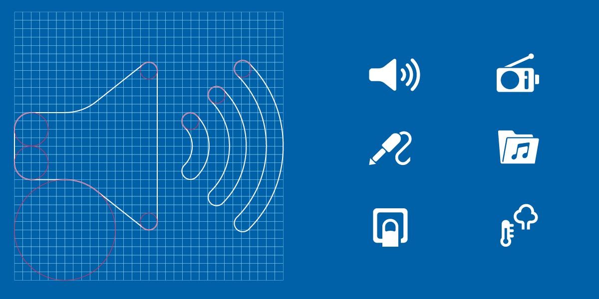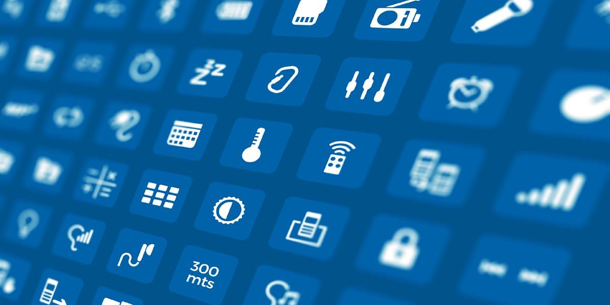 Entre daltres elements visuals, es va dissenyar un extens sistema d'icones per simbolitzar les funcions previstes de tots els seus productes, una bibloteca amb més de 80 icones.