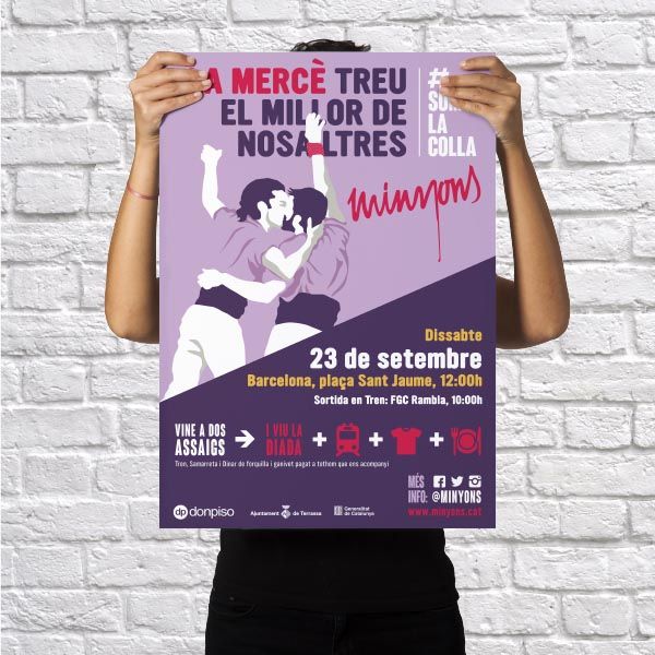 La colla castellera Minyons de Terrassa va confiar en el nostre estudi per dissenyar la seva estratègia de comunicació per la temporada 2017. La colla és una entitat molt vinculada amb la ciutat i té molt en compte la seva comunicació per mobilitzar la seva afició en les grans cites de la temporada. Icònica va afrontar aquest projecte basant-se en dos eixos: reforçar la marca de la colla i desenvolupar un llenguatge impactant que transmeti l'emoció de fer castells amb la colla de la ciutat.